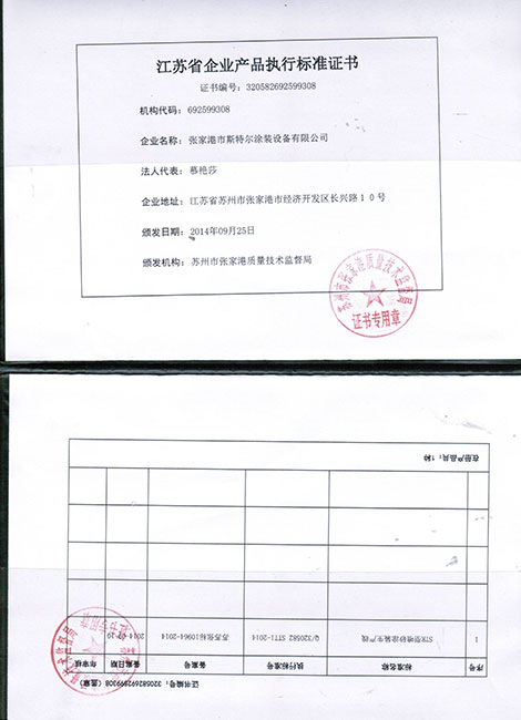 類產品標準執行證書、勞動資源部頒發涂裝噴砂工程師證書、