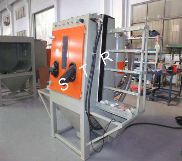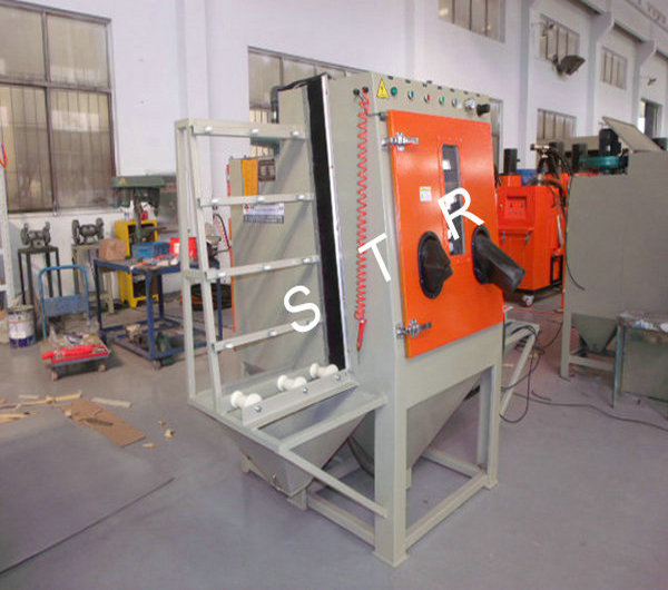 Flat glass, marble, metal plate vertical through the type dry sandblasting machine,