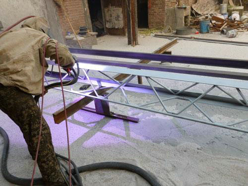 江蘇省斯特爾對外經濟承攬噴砂生產制造工藝我裝修公司有自功化的噴砂生產制造工藝的設備階段的設備有:大形冷軋鋼件