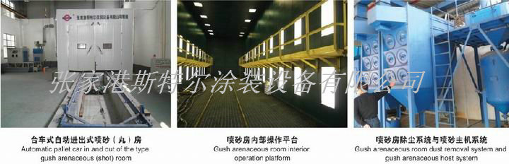 10、噴砂(丸)房室體采用聚苯乙烯發泡塑料夾心彩板房組成,具有消音功能,美觀、堅固、密閉。