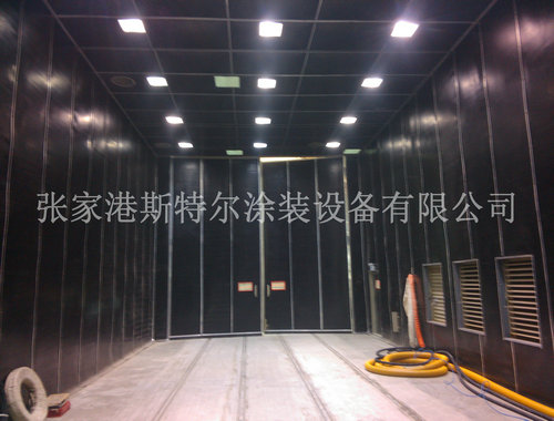 10、噴砂(丸)房室體采用聚苯乙烯發泡塑料夾心彩板房組成,具有消音功能,美觀、堅固、密閉。