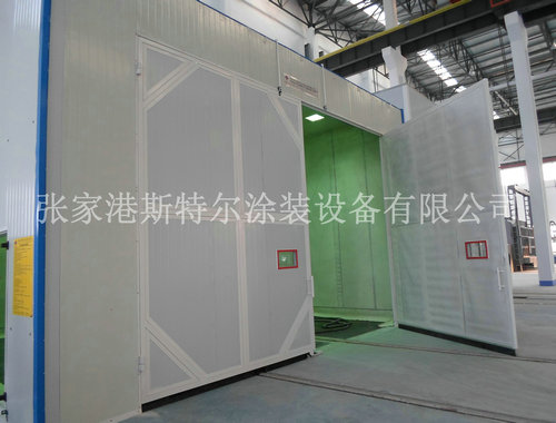 10、噴砂(丸)房室體采用聚苯乙烯發泡塑料夾心彩板房組成,具有消音功能,美觀、堅固、密閉。