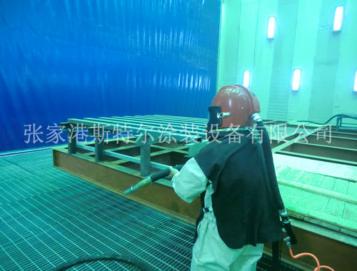 10、噴砂(丸)房室體采用聚苯乙烯發泡塑料夾心彩板房組成,具有消音功能,美觀、堅固、密閉。
