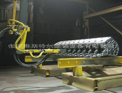 斯特爾公司研發的數控全自動噴砂房能夠大幅度減少在運營代價和升降質量并且能夠在質量上優與手工操作,我公司在滿足生產質量、生產效率、運行成本的理念下研發機器人噴砂(丸)房。