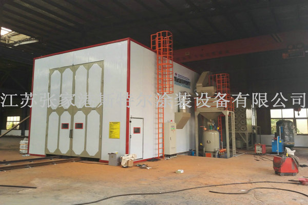 由于噴砂室體采用夾心彩鋼板制造,夾心材料為聚本乙烯發泡塑料,因此具有良好的隔熱保溫功能。它能將噴砂時產生的1500HZ—2000HZ的高頻尖銳噪音降到500HZ以下,極大地改善了噪音環境;