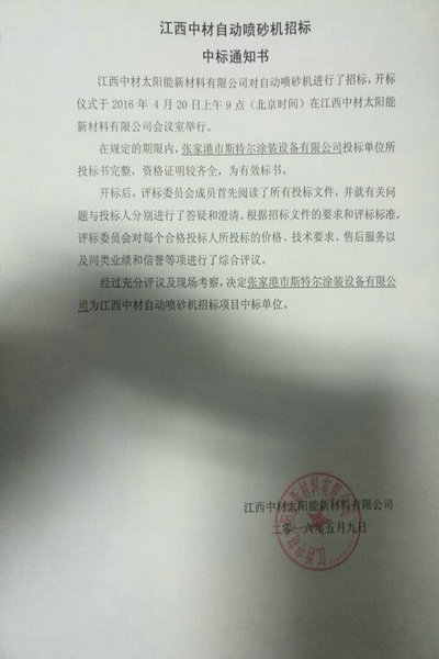 我公司成功中標數控石英坩堝噴砂機,斯特爾設計制造的數控石英坩堝自動噴砂機得到了江西中材太陽能新材料四虎永久在线-四虎永久免费-四虎影视在线-www.四虎影视高度好評,經過多次的技術溝通,中材技術領導人員對斯特爾公司現場考察,最終成功中標,也為我公司在太陽能行業打下基礎,目前我公司生產的太陽能石英坩堝數控噴砂機在能耗上實現節能,設備無需基礎,大大降低了設備投入費用,斯特爾公司致力于打造,穩定、節能、高效的石英坩堝數控自動噴砂機為目的。