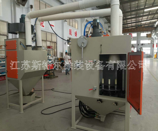 斯特爾機械為泰州客戶設計非標的圓盤自動式噴砂機交付使用! 自動式行星轉盤式自動噴砂機是泰州創新電子總公司為旗下第七個子公司:中山市臺海電子四虎永久在线-四虎永久免费-四虎影视在线-www.四虎影视定制的一款自動噴砂機,該設備不僅為客戶節約了人力物力,更為客戶的產品提升了一個檔次。行星轉盤式自動噴砂機配置6把高效噴砂槍,每把槍單獨控制,除塵風機、工件旋轉電機、轉盤旋轉電機、噴槍擺動電機以及室體照明總功率約為4.55KW,大轉盤上共14個工位,可連續不間斷工作,加工和更換工件同步進行,工件處理效率約6-12秒/件,根據工件大小不同確定時間。我公司在設計噴砂機方面采用噴槍數量少,加工效率高的原則進行噴砂機的整機設計制作,充分利用斯特爾噴砂機的多方面優勢采用機械運動件、及機械部份的高穩定性的自動化流程實現噴砂處理加工效率高、整體在使用中降低能耗等優點。